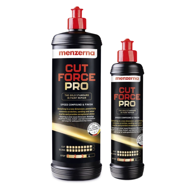 The Ultimate Powerhouse for Paint Correction and FinishingMenzerna Cut Force Pro is the revolutionary "Gold Standard" in high-performance polishing. Available in a 1-liter professional size, this compound is engineered for detailers who refuse to compromise between aggressive defect removal and a high-gloss finish. Cut Force Pro belongs to a new generation of abrasives that can remove 1500 grit sanding marks, heavy scratches, and severe oxidation in record time, while simultaneously refining the surface to a brilliant, show-car shine. This formula utilizes diminishing abrasive technology, allowing the product to transition from a heavy cut to a fine polish during the work cycle. This often eliminates the need for a multi-stage correction, making it the ultimate One-Step solution for hard clear coats and weathered paintwork. It is low-dusting, silicone-free, and features an extended working time, providing a clean and efficient workflow in professional environments. Whether you are using a rotary or dual-action (DA) polisher, Cut Force Pro delivers maximum removal rates with a clarity that usually requires a secondary finishing step. Product Features: