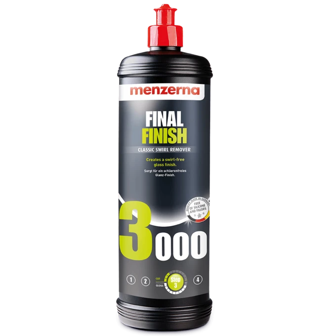 The Professional Solution for a Flawless, Deep-Gloss FinishMenzerna Final Finish 3000 (FF 3000) is the classic high-gloss polish trusted by professional detailers and automotive manufacturers worldwide to achieve a perfect, showroom-quality surface. This 1-liter professional size provides an efficient and economical solution for the final refinement stage of the paint correction process. FF 3000 is specifically engineered to remove fine polishing marks, light hazing, and holograms, ensuring a crystal-clear reflection on all types of clear coats. As a fine finishing polish, it excels at bringing out the maximum color depth and brilliance of the paintwork after a heavy or medium cutting stage. The formula is silicone-free and filler-free, meaning it provides true paint refinement rather than temporarily masking imperfections. Designed for a smooth, user-friendly experience, it offers a clean working cycle with minimal dusting and an effortless wipe-off. Whether you are prepping a vehicle for a high-end sealant or simply maintaining a pristine finish, Menzerna 3000 delivers a reliable, mirror-like result every time. Product Features:
