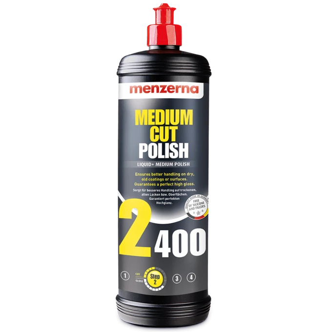 The Professional Liquid Solution for Fast, Reliable Paint CorrectionMenzerna Medium Cut Compound 2400 (MCC 2400) is a high-performance liquid polish designed to bridge the gap between heavy cutting and final finishing. This 1kg professional-size container provides a high-efficiency solution for detailers who require a product with superior lubrication and extended working time. Formulated to handle a wide range of paint defects, MCC 2400 effectively removes sanding marks up to 2500 grit, light scratches, and swirl marks, while leaving behind a remarkably high-gloss surface. Unlike many standard compounds, the "Liquid" nature of 2400 allows for an easier application process on both fresh and weathered clear coats, particularly in warmer climates where other polishes might dry out too quickly. Its silicone-free and filler-free formula ensures that the correction is permanent, making it a staple in professional body shops and high-end detailing studios. Whether used as a powerful one-step on medium-soft paint or as a refining step after a heavy compound, Menzerna 2400 delivers a clear, hologram-free finish with minimal effort. Product Features: